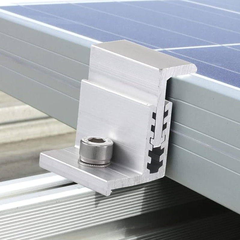 The adjustable solar end clamp to hold PV modules firmly at the edges. It works in conjunction with solar panel mid clamp to offer more stability on railings. With adjustable function, the Solar Panel Adjustable End Clamp is fit to framed PV modules in thickness of 35mm, 40mm, 45mm and 50mm, it can be used in most of panels you don’s know the thickness. It is easy to be installed with rails and will save a lot of installation time. The adjustable end clamp is the best deals for solar panel mounting brackets for 35-50mm framed modules.