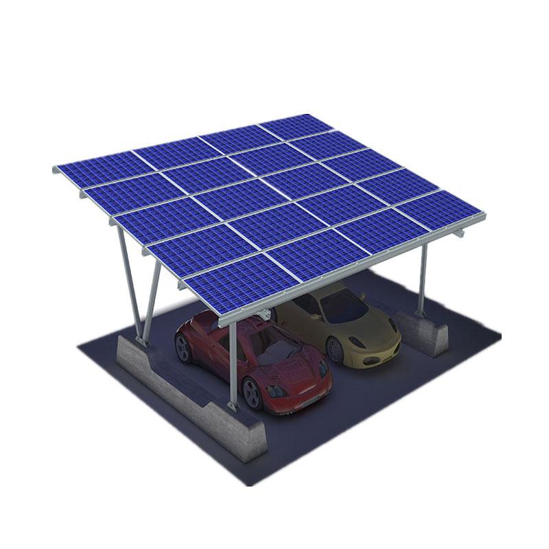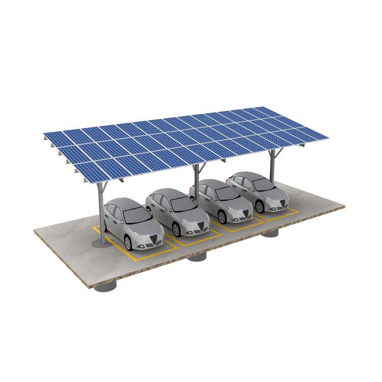 Parking roof carport can be mounted on concrete foundation or ground screws. Customized tilt angles meet complex requirements of construction site and use effectively energy of sun. Pre-assembled beam saves labor time, reduces cost and makes installation quick.
